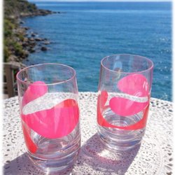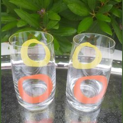 2 st Glas - Röd Randiga Dricksglas Saftglas - Retro Vintage