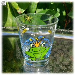 Underbart grod glas där grodan har kungakrona med bin Fint skick