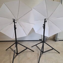 Fotobelysning med stativ och paraplyer
