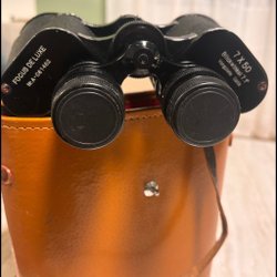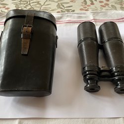 Äldre kikare med tillhörande väska