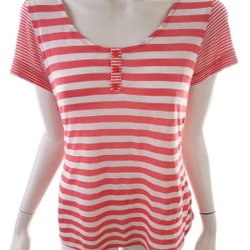Ny! T-SHIRT, randig, röd-vit, mjuk, bomull, kort ärm, stl 40/42, M-L