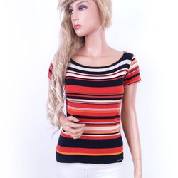 Ny! T-SHIRT, randig, röd-vit, mjuk, bomull, kort ärm, stl 40/42, M-L