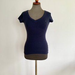 Tommy Hilfiger, t-shirt, strl: XXS, blå, 100% bomull, tröja, topp, v-ringad,