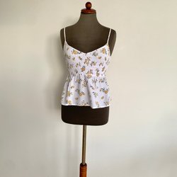 Hollister linne strl S vit/ gul blommig smock liv viskos topp