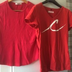 2 st Retro Röda Dam-Toppar - V-ringad T-shirt Crocker L + Linne George strl 12