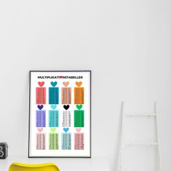 Multiplikation hjärta affisch – 50x70 cm – Pedagogisk matteposter – Barnrum