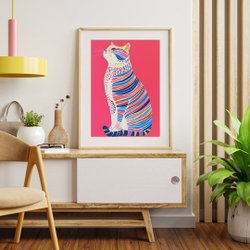 Rosa katt affisch – 50x70 cm – Modern kattkonst & pop art – Hög kvalitet