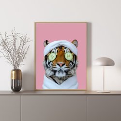 Tiger Rosa Background Poster – Stilren & Färgstark Djurposter | 50×70 cm