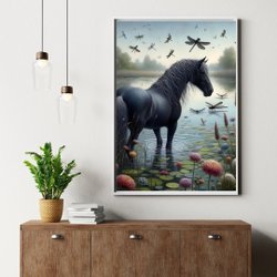 Svart Häst Affisch – Kraftfullt & Elegant Djurmotiv | 50×70 cm