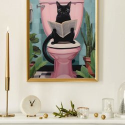 Svart Katt Affisch i Toa – Humoristisk & Lekfull Poster | 50×70 cm