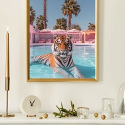 Tiger i Poolen Poster – Unikt & Humoristiskt Djurmotiv | 50×70 cm
