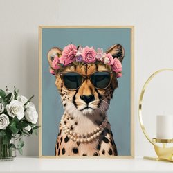 Tiger Poster – Elegant med Blomma Background | Fotopapper Luster 260g | 50×70 cm