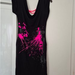 Svart klänning, björken mönster. Strl ca 36-38. Det passar bra för fest.