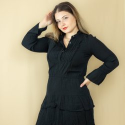 Långärmad kortklänning med veck och volang - GAP - svart, stl. M