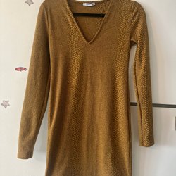 Helt ny! Brun klänning, metallic, festklänning, storlek 38, guldig klänning