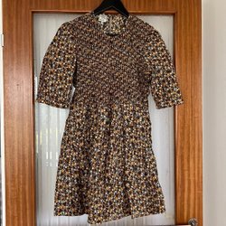 H&M brun/svart/vit klänning, storlek 38