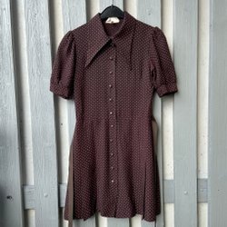 Fantastisk brun prickig vintageklänning, 70-tal. Toppskick, strl 36.