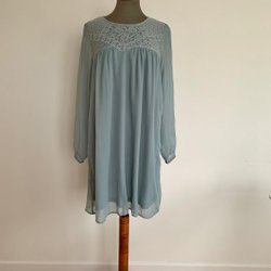 Zara klänning Strl: S ljusblå finstickad utställd Nyskick fyrkantig ringning