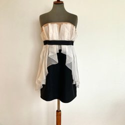 PAULE KA, Fest klänning, Strl 40 svart/ beige, tyll cocktail, 100% silk