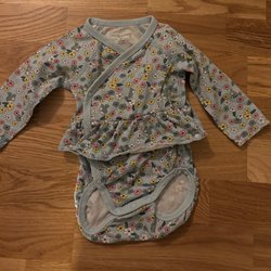 Blommig body med krås stl 80 från Polarn O. Pyret