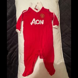 Röd/blå body, uppskattad storlek 80