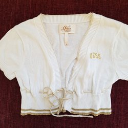 GUESS, VACKER VIT KOFTA/BOLLERO MED GULDIGA DETALJER. 100% BOMULL,