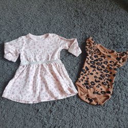 The Brand kortärmad leopard body och Name It klänning med stjärnor strl 62