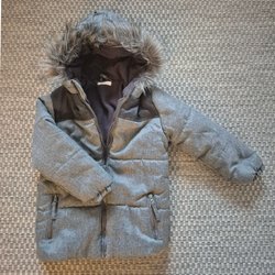 Grå vinterjacka st 104, fleecefoder, luva