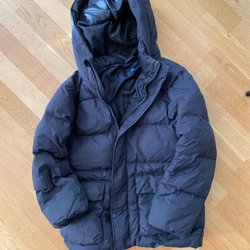 Uniqlo svart dun jacka, storlek 9-10