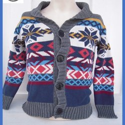Stickad kofta mönstrad varm med kapuschong s 98-104 Fint skick