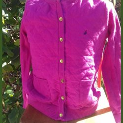 Nautica cerise kofta på gyllene knappar med rutade sömmar s 128 endast tvättad