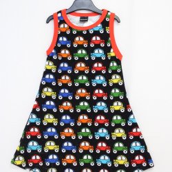 Ärmlös och superball (!) klänning med bilar på - Metsola - Storlek 98/104