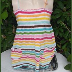H&M klänning på resår vackra färger turkos axelband s 134 Fint skick