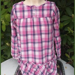 Kids by Lindex klänning ljuvlig rutad rosa- lila fickor volangkant s 122 Fin