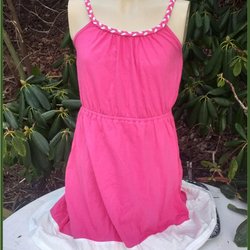 Place sommarklänning cerise med vit kant axelband och volang Fint skick