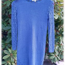 Vintage Minus Margot blå stickad spets klänning 74cl 80cl