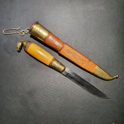 Iisakki Järvenpää äldre signerade knivar dubbelkniv i läderfodral från Finland