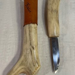 Kniv i renhorn och läder.