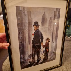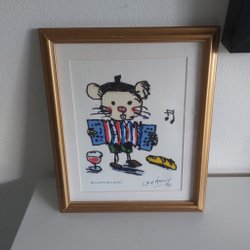 Tavla - Lasse Åberg - Musse Pigg tittar på solen - Guldram - Namnplakett