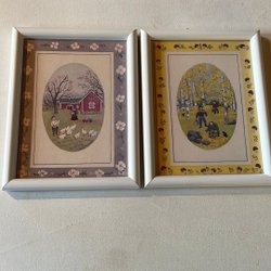 Tavlor med pressade blommor med lekande barn. Väldigt annorlunda!