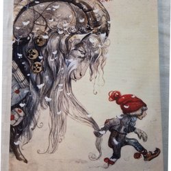 Tavla med motiv tummelisa målat på en kakelplatta