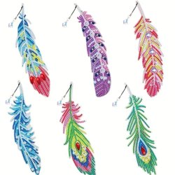 6 Vackra Bokmärken Fjädrar / Diamond Painting