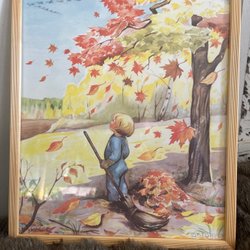 Tavla vintage i trä ram signerad K Vilhelmsson
