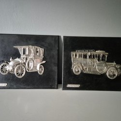 RodeX Tavlor,svart läder,renault 1913,Fiat 1906, biltavlor, samlarobjekt