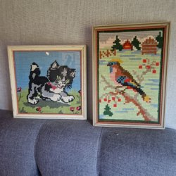 Broderade tavlor diameter 27 cm