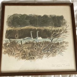 Harald Wiberg glasad Tavla med svanar mått: 26,5 x 25,5 cm