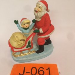 Tomte med kälke ca 12cm hög i porslin, retro jultomtar jul