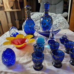 - Glasprydnader i en mängd former, från abstrakta skulpturer till detaljerade figurer.