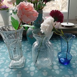 • Genomskinliga eller tonade glasvaser, perfekta för långa, svepande snittblommor.