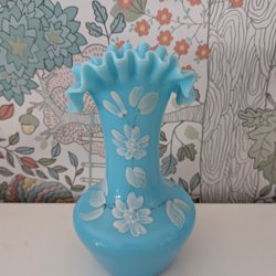 Vacker vas med blommor Antik Jugend 1900-tal Opalglas